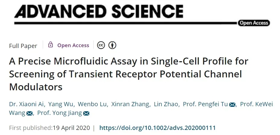 為了有效解決中藥藥效成分的高效發(fā)現(xiàn)及其分子機(jī)制研究問(wèn)題,我室屠鵬飛、姜勇教授團(tuán)隊(duì)與青島大學(xué)藥學(xué)院王克威教授團(tuán)隊(duì)合作開(kāi)發(fā)了一項(xiàng)精準(zhǔn)單細(xì)胞微流控技術(shù),用于瞬時(shí)受體電位(Transient Receptor Potential, TRP)通道調(diào)節(jié)劑的高效發(fā)現(xiàn),相關(guān)研究成果以“A Precise Microfluidic Assay in Single-Cell Profile for Screening of Transient Receptor Potential Channel Modulators”(精準(zhǔn)單細(xì)胞微流控篩選TRP離子通道調(diào)節(jié)劑)為題發(fā)表在國(guó)際著名SCI期刊Advanced Science(IF=15.804)上,并被選為封底文章。