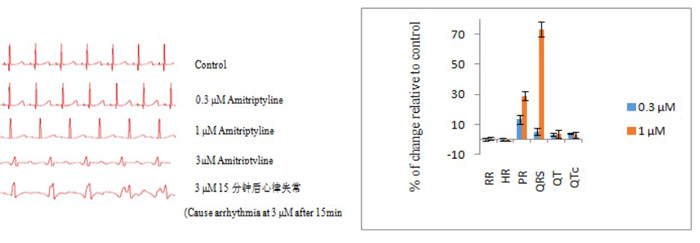 圖例:阿米替林對離體豚鼠心臟ECG的影響